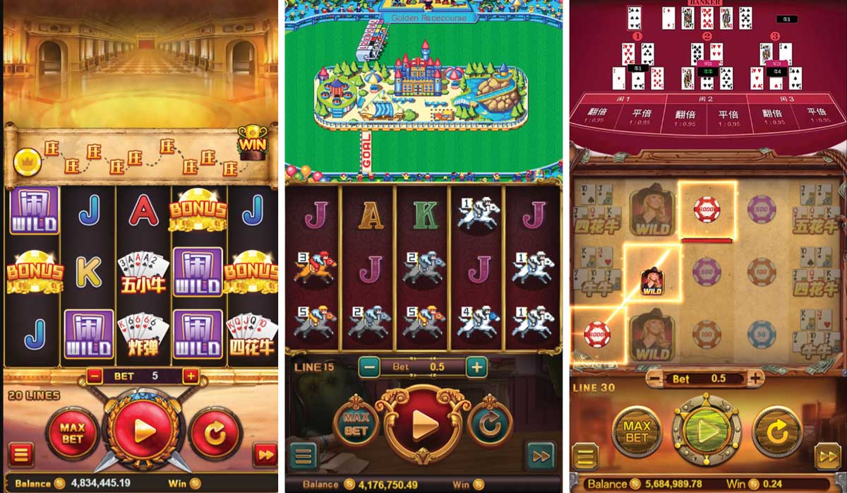 Amiga Entertainment, an online company owned by Chen Zhi, develops online gambling games that essentially function as slot machines. (Images from Amiga Entertainment website)